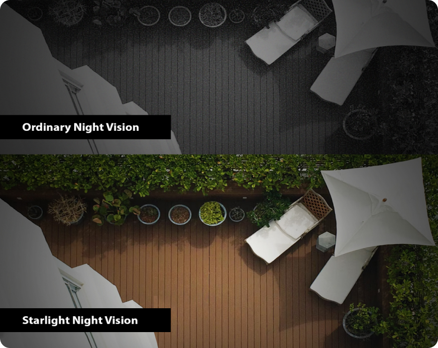 An improved version of the smart night vision. Our Starlight vision technology displays a clear color image, giving you a beautiful day vision at night.
